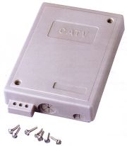 Description: Residential enclosure, grey plastic with hasp for padlock, 7" x 5" x 1 1/2"