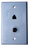Description: Wall plate with 1 telephone jack and 1 3 GHz coax jack, white
