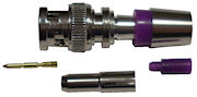 Description: Compression BNC male connector for mini RGB cable. Fits center conductor sizes 22-24 AWG, 4 piece design