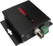 Description: Fiber optic baseband video transmitter and receiver for a single baseband video signal with reverse data transmission for PTZ cameras, mini style
