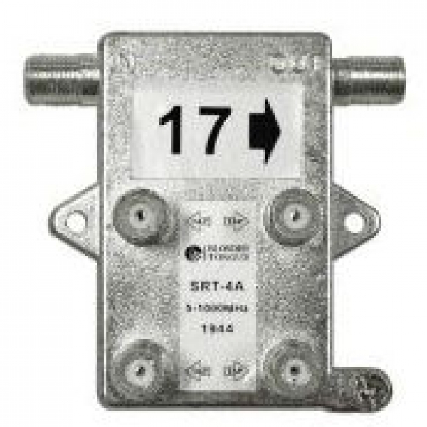 Description: Four port, indoor coaxial cable tap, 5-1,000 MHz, 8, 11, 14, 17, 20, 23, 26, 29, 32 and 35 dB values available (must specify when ordering)