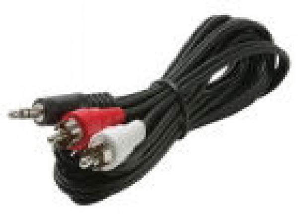 Description: Audio Y adapter, 3.5mm stereo plug to left and right RCA plug, 12 foot.