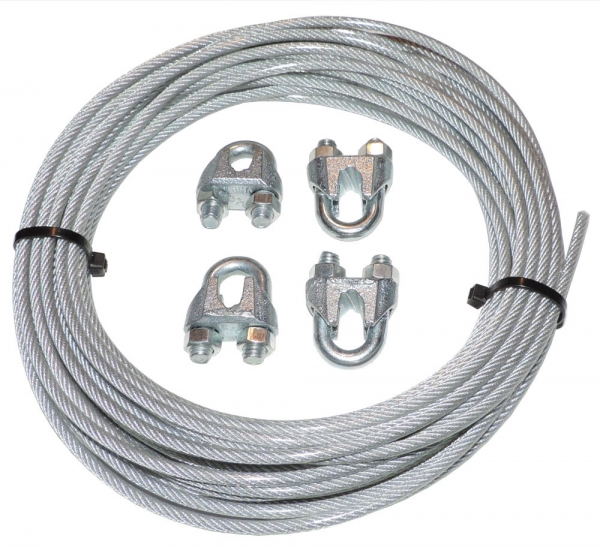 Description: Tethering kit for satellite dish and mounting equipment, includes 50 feet of coated steel cable and four steel U-Bolt clamps.