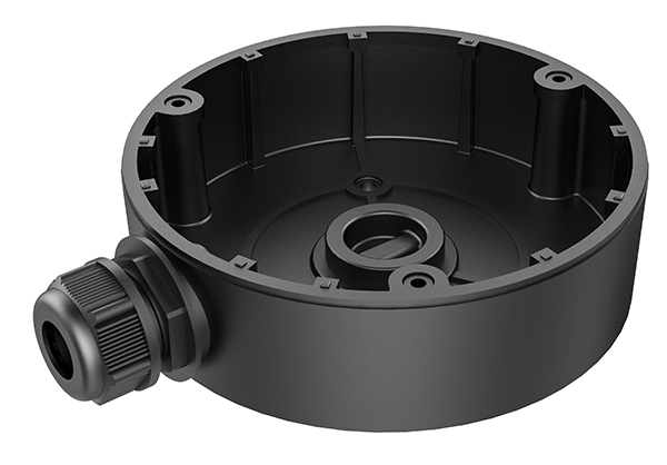 Description: Junction box with conduit intake, black aluminum alloy, Dimensions: 4.9 inches x 1.38 inches, Weight .46 lbs, Max load capacity: 2.2 lbs