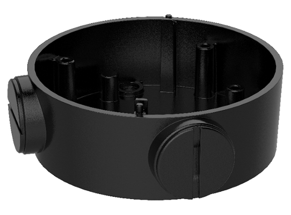 Description: Junction box with conduit intake, black aluminum alloy, Dimensions: 3.5 inches x 1.42 inches, Weight: .55 lb, Max load capacity: 9.9 lbs