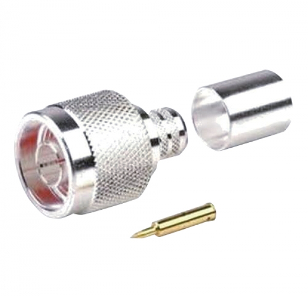 N Male Crimp Connector for use with Wilson 400 Cable or RG-8U Cable. To create equivalent cable components for cell phone signal booster kits.