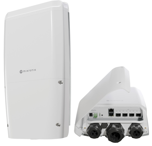 The CRS305-1G-4S+OUT FiberBox Plus is a rugged, cost-effective outdoor 10G fiber smart switch designed for high-mast, pole, and tower installations where reliable high-speed connectivity is required. Positioned as a powerful budget-friendly alternative to the netFiber 9, it delivers 10 Gigabit SFP+ performance in a compact, weather-resistant enclosure.