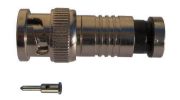 Description: The 2 piece BNC compression connector designed to make sure you get a video signal every time. The separate pin fits directly on the center conductor of your coax cable and the BNC sleeve compresses onto the jacket. The advantages are connection reliability, cable signal ingress/egress elimination, and waterproofing. Compression style connectors seal between the connector and cable. Aside from eliminating the opportunity for moisture to leak into the connection this seal keeps your signal inside the cable and keeps unwanted signals from entering your system through openings in the connection. They come in bags of 50, extra center conductor pins are available, Model number CT-BNC59-PIN, and require a compression tool Model number CT-CCT-BFR2.