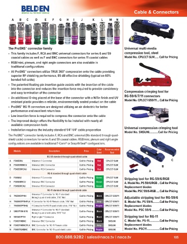 N FSNS11QHBNC BNC Connector for RG-11 quad-shield cable Call for Pricing Purple SNSUNI Model No. PSC11...............Call for Pricing