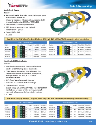 DT-C6PC-2 BL YL GY GN BLK WT 2' $1.09/each $.85/each DT C6PC -15 BL YL GY GN BLK WT 15' $2.99/each $2.59/each