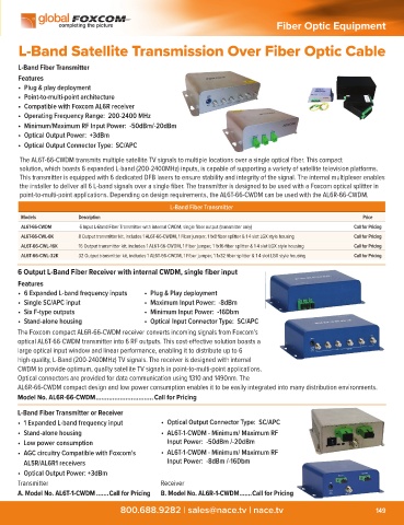 the installer to deliver all 6 L-band signals over a single fiber. The transmitter is designed to be used with a Foxcom optical splitter in