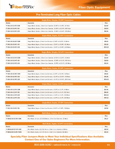 Specialty Fiber Jumpers Made to Meet Your Individual Specifications Also Available.