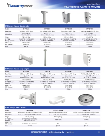 Description Wall Mount for PTZ - Short Ceiling Mount for PTZ - Short Corner Mount for PTZ - Short Pole Mount Bracket for PTZ - Short