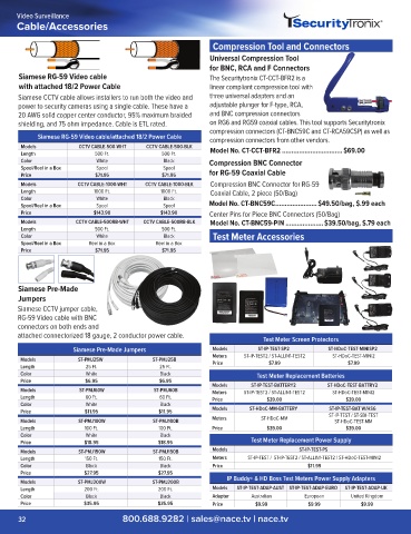 Models CCTV CABLE-500RB-WHT CCTV CABLE-500RB-BLK Model No. CT-BNC59-PIN ....................$39.50/bag, $.79 each