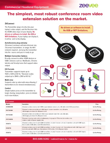 ZVCRXHDMI ZVconnect wireless receiver with HDMI output. Includes receiver unit, USB cable and 2A USB power block. Call for Pricing