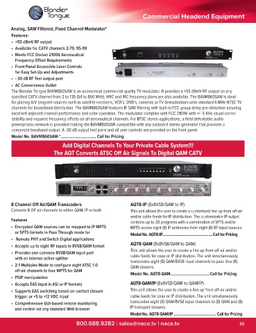 off-air channels to four MPTS for QAM Model No. AQT8-QAM .................................Call for Pricing