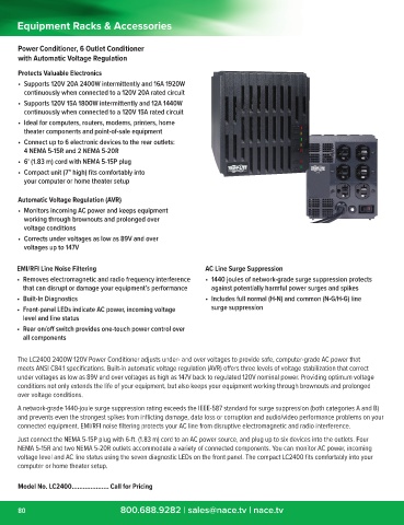 voltage level and AC line status using the seven diagnostic LEDs on the front panel. The compact LC2400 fits comfortably into your