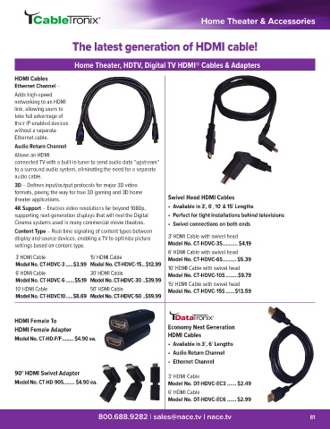 Model No. CT-HD-F/F ........ $4.90 ea. HDMI Cables