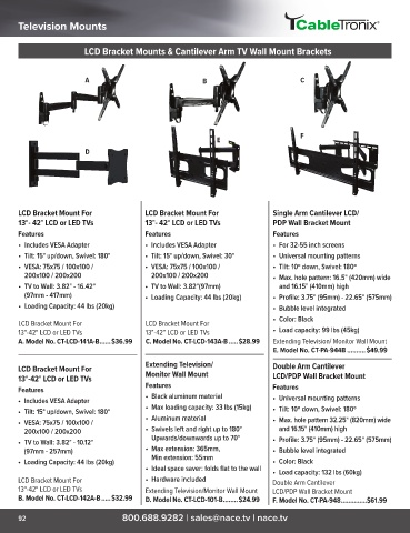 A. Model No. CT-LCD-141A-B ......$36.99 C. Model No. CT-LCD-143A-B .....$28.99 Extending Television/ Monitor Wall Mount