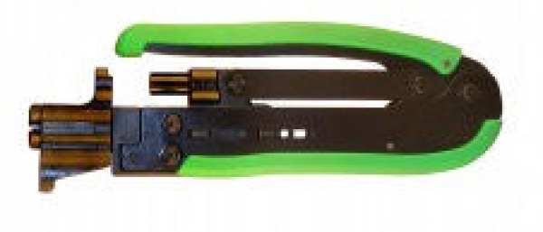 Description: This rugged tool is designed for the CATV installation contractor. Patented rotating connector positioner allows for quick change between RG11/7 and RG59/6 with no adjustments required. Crimp height is fixed for PPC Aquatight connector \'EX or short version\' compression fittings and others with similar compression length