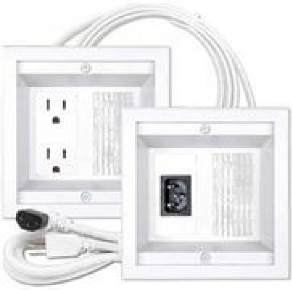 Description: Double Gang HDTV Power Relocation Kit 7', with Pocket Plates. Easily relocate power to your wall mounted HDTV without the need of an electrician. Provides an affordable power solution for wall mounted flat panel TVs, Perfect for retro-fit construction projects, Prewired – No electrician required, Conceal wiring within the wall, Meets NEC Code, UL 817, CSA#22.2#21, Can be used with remote Surge/Power Conditioner to HDTV. Power Jumper™ HDTV Power Relocation Kit includes: (2) 2-Gang Recessed Boxes (2) 2-Gang Frames (2) 2-Gang Décor Brush Plates (2) Wall Plates (1) PJW-7R Premise Powerered Power Feed (1) 6 ft. Right Angle IEC 60320 CY13 to NEMA 5-13P Cord Set, Screw Hardware
