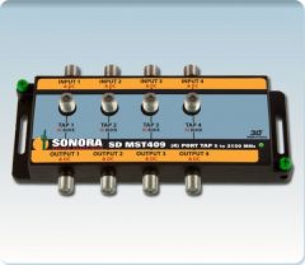 Description: Four port coaxial satellite tap, four separate inputs with four loop pass through ports and four tap ports, 5-2,150 MHz, 9 dB tap loss