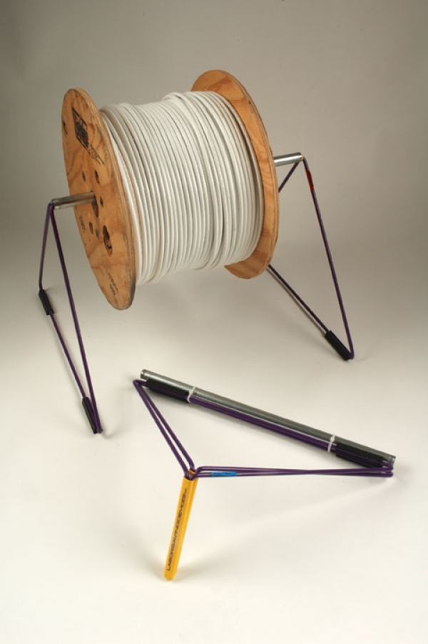 Description: DeCoil-Zitâ„¢ Reel Holder. The DeCoil-Zit is a collapsible wire reel/spool holder that can be quickly assembled or disassembled for on-site use and easy storage. Holds standard reels up to 20 inch diameter. Consists of two heavy duty tempered steel tripods, welded and finished in tough, purple powder coat finish that slide together with standard 1/2\\\\\\\" conduit to form a stable platform for your wire reels.
