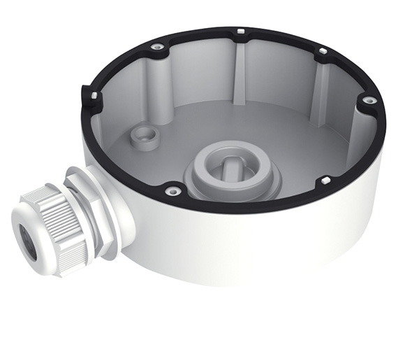 Description: Junction box with conduit intake, white aluminum alloy, Dimensions: Φ4.37 inches, Weight: 0.53 lbs, Max load capacity: 9.9 lbs