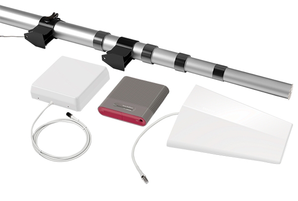 The weBoost Destination RV is our most powerful cell signal booster designed for large RVs, toy haulers, and trailers. For use only when parked, the booster stops dropped calls, improves video streaming, and increases data speeds, especially in remote areas. Every passenger gets a strong, reliable signal on all cellular-enabled devices on all carrier networks. The booster kit includes an outside directional antenna that mounts on a 25-foot telescoping pole to target nearby cell towers. This technology is 5G ready and works on almost any camper or trailer, providing maximum signal inside your RV. The initial DIY installation process takes approximately 30 minutes, and each subsequent takedown and setup takes about 10 minutes. Like all weBoost boosters, the Destination RV is FCCapproved and comes with a 2-year warranty. Boosts cell signal in RVs, toy haulers, and trailers when stationary.