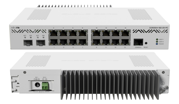 Description: Cloud Core Enterprise Router with 16 Gigabit Ethernet and Dual 10G SFP+, RouterOS v7