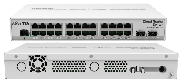 The CRS326-24G-2S+IN is a high-density Gigabit smart switch designed for enterprise edge, SMB core, and aggregation deployments. It features 24 Gigabit Ethernet ports and two 10G SFP+ uplink ports, delivering high port density with high-speed fiber connectivity. Powered by an ARM-based architecture and supporting dual boot (RouterOS v7 or SwOS), it provides flexibility for simple managed switching or advanced features such as VLANs, monitoring, access control, and light routing.