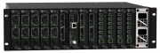 Description: HDBridge 3000 series chassis, control module and power supplies for up to 12 HDBridge 3000 series modules. The flexible, modular design of the chassis provides 12 media slots with the flexibility to mix-and-match HDMI, component, and composite cards, making it ideal for professional-grade video distribution. Adjustable rack ears can be moved to either the front or rear of the unit, allowing front-facing or rear-facing media modules and power supplies. What’s more, if an existing media module is replaced with the same type of module, it is automatically programmed by the control module to use the same settings as the previous module, saving valuable time, and eliminating expensive truck rolls.