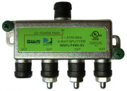 Description: Wideband 4 way splitter, 2-2,150 MHz with weather boots, specifically designed to work with DIRECTV's MFH2 system, horizontal design