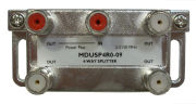 Description: Wideband 4 way splitter, 2-2,150 MHz with weather boots, specifically designed to work with DIRECTV's MFH2 system, vertical design
