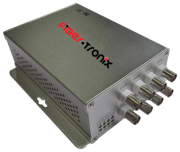 Description: Fiber optic baseband video transmitter and receiver for eight baseband video signals with reverse data transmission for PTZ cameras and ethernet transmission