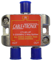 Description: 2 Way splitter, 5-2,300 MHz, Diode Steered, all legs power passing, 2A Power pass capability