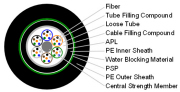 Description: Outdoor singlemode fiber optic cable, stranded, loose tube, armored, direct burial, four core, 2,000 meter spool