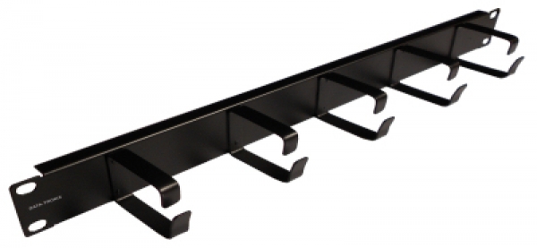 Description: 19 Inch rack mountable cable management panel with metal rings, black finish, 1 rack space (1.75 Inches high)