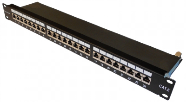 Description: The DT-ESHPP-624P is a 24-port shielded Category 6 patch panel designed for Gigabit Ethernet network applications. This panel supports T568A and T568B wiring configurations, is FCC subpart 68 compliant and provides complete 256MHz bandwidth. The DT-ESHPP-624P patch panel is also reverse compatible to meet Category 5 and Category 5e specifications.
