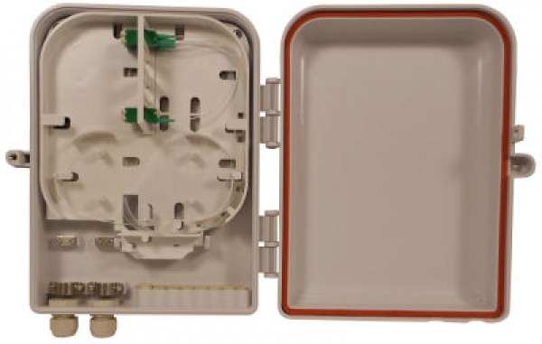 Description: PLC Fiber Optic Splitter Wall Box, LC/APC, SM, 1 x 4