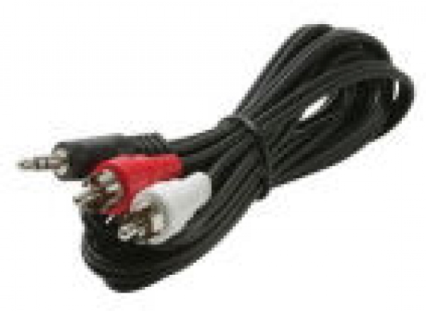 Description: Audio Y adapter, 3.5mm stereo plug to left and right RCA plug, 6 foot.
