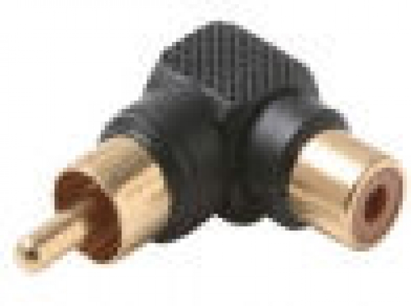 Description: 90 Degree RCA adapter, RCA jack to RCA plug