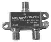 Description: 2 Way splitter, 5-1,000 MHz, circuit board design, 120 dB RFI, solder back, flat port, small aperture series