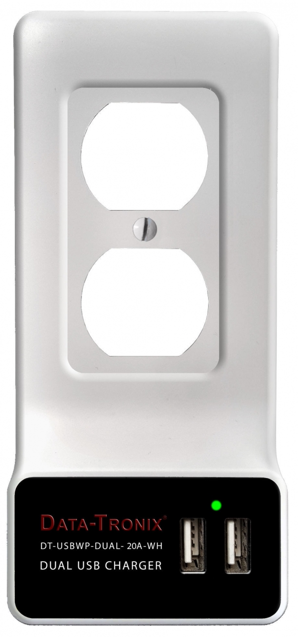 Description: USB Charging Wall Plate For AC Outlets, Make any standard AC outlet USB compatible in seconds, Fits over existing 20A standard AC wall outlet, No wiring & no batteries, AC Outlet not included, Single gang, Dual USB outlets, ETL Rated, For residential grade outlets, White finish.