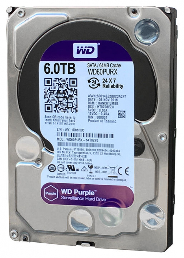 Description: Western Digital Video and Surveillance NVR/DVR hard drive, SATA interface, 6 TB