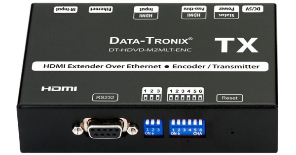 Description: Discontinued - The DT-HDVD-M2MLT-ENC is the encoder unit for the DT-HDVD-M2MLT Series. The DT-HDVD-M2MLT Series is an HD Video Streaming set which includes an HDMI transmitter and HDMI receiver for real-time distributing of up to 1080p video over an Ethernet. This HDMI over IP Extender uses H.264 compression. The units can be used in a point to point application to distribute a single HDMI source to a single video receive site or in a multi-point to multi-point application to distribute HDMI sources to multiple receive sites using an external Ethernet. They support transmission up to 330’ over a single cat5e/6 cable when the TX and RX are connected directly using an Ethernet cable (no switch) also known as point to point. When using an Ethernet switch topology, the signal transmission length will be consistent with Ethernet distance limitations. For extremely long runs, fiber optic transmission systems can be employed. Both the transmitter and receiver are powered via a local DC power supply (included).