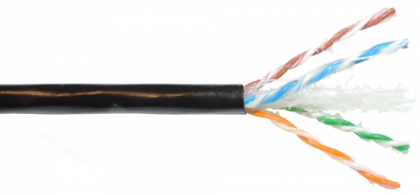 Description: UTP CAT6 4PR/8C Network Cable, 23 AWG Bare Solid Copper, 550 MHz Direct Burial, Gel, 1000', BLACK PE (Polyethylene) Jacket