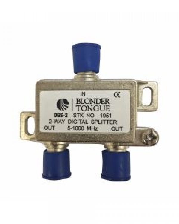 Description: 1 x 2 digital ready indoor splitter, 5-1000 MHz, -120 dB RFI solder back design, machine threaded flat F ports