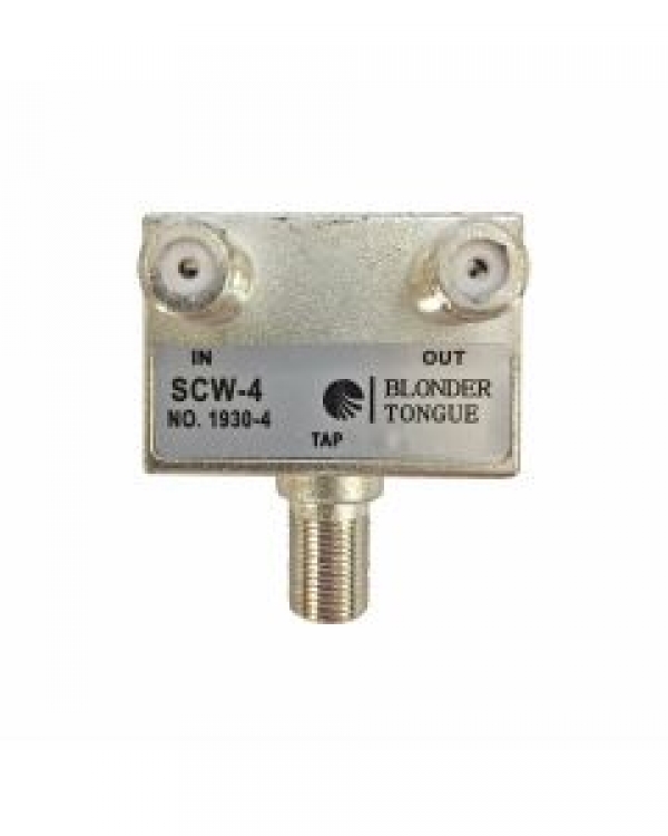 Description: The SCW is a single port directional tap. It has a range of 5-1000 MHz, and is offered in an 90 degree wall plate convenient style. 4, 6, 9, 12, 16, 20, 24, 27 and 30 dB values available, specify when ordering.