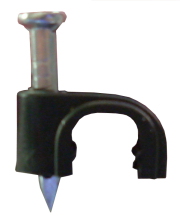 Description: Single RG-6 cable clip with masonary nail, black